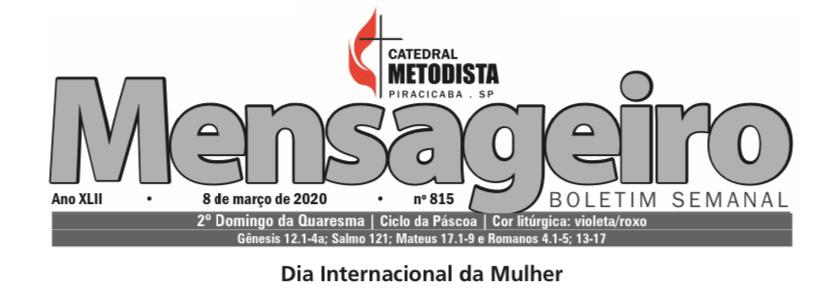 (Texto originalmente escrito para o Dia Internacional da Mulher de 2020, para o Boletim Mensageiro 815, ano XLII de 08 de março de 2020, p. 3)